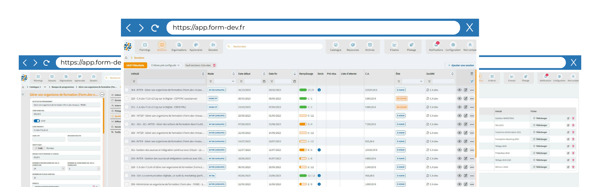 Créé par des pro de la formation (comme vous), Formdev est la solution digitale française complète pour la gestion des centres de formation combinant une plateforme aux fonctionnalités avancées et des services poussés.