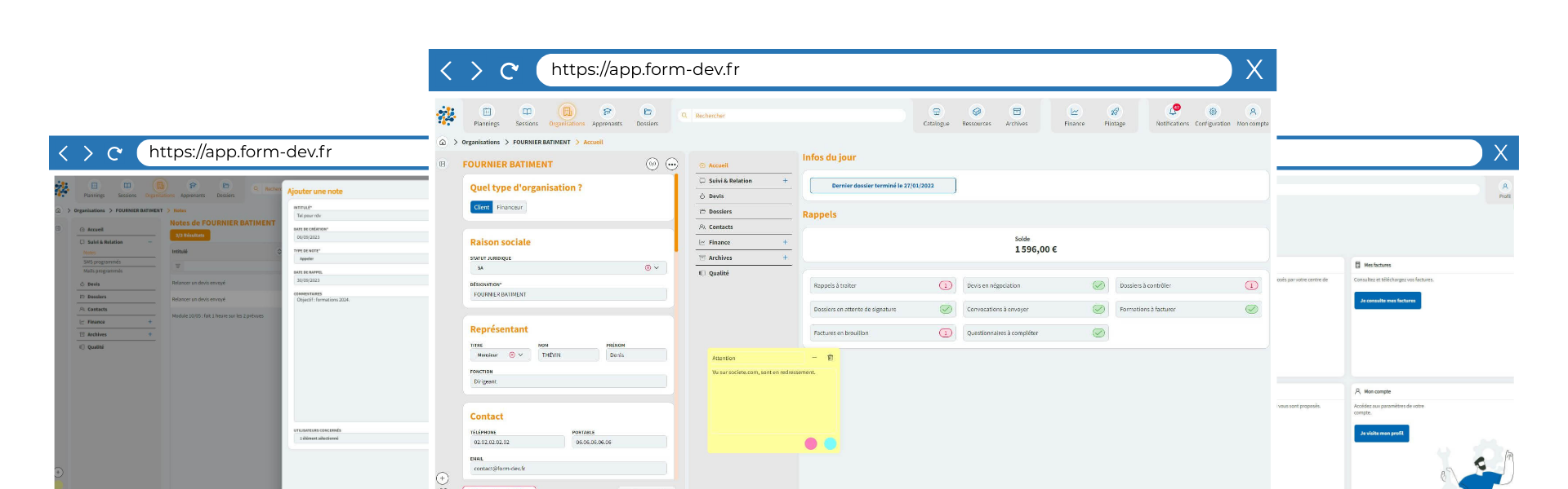 - Applications connectées : Synchronisez Formdev avec vos outils du quotidien pour une organisation encore plus fluide et personnalisée.