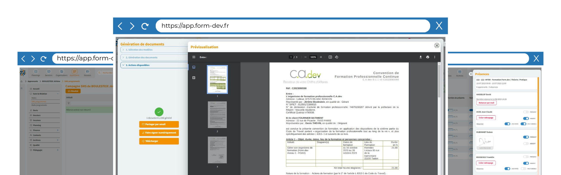 Générez, archivez et exportez vos documents en toute simplicité, et concentrez-vous enfin sur l’essentiel : votre formation.