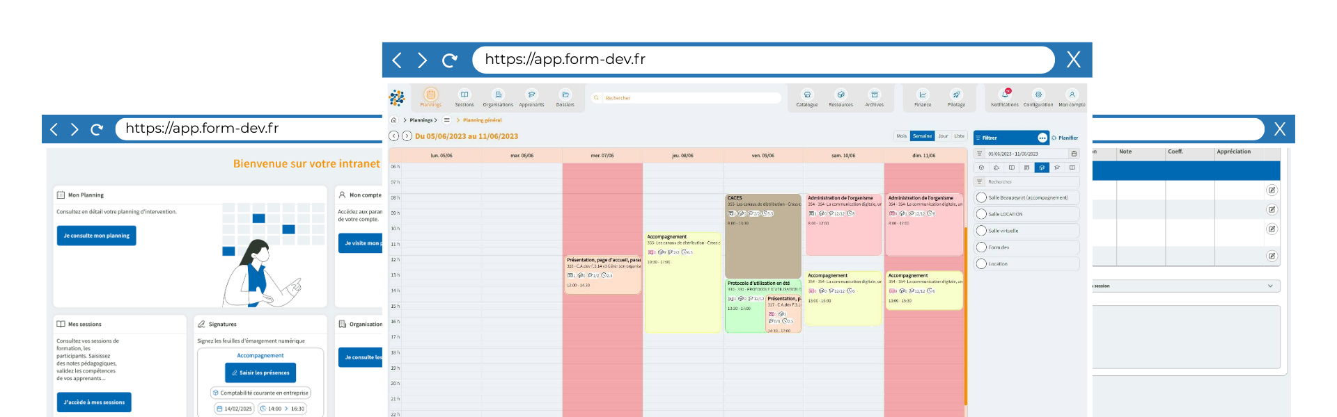 - Portail de vos apprenants & de vos clients : Offrez un extranet personnalisé pour consulter documents, plannings et demander des devis en ligne.