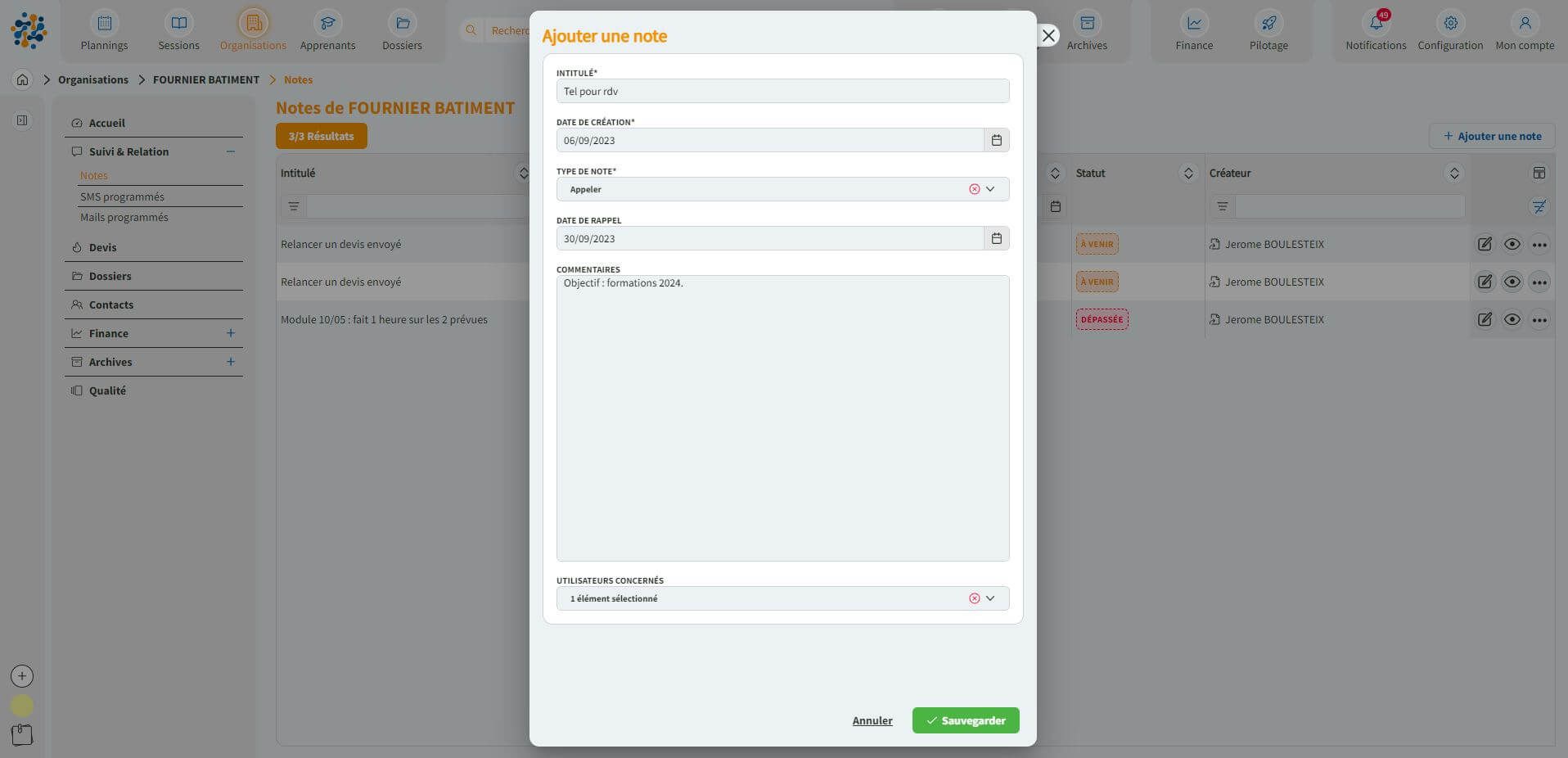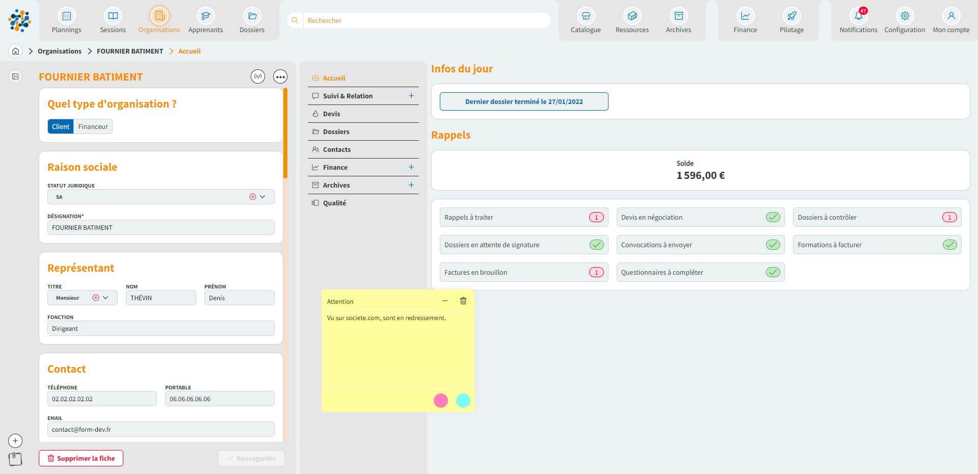 - Saisissez des notes et historiques, créez des actions à réaliser et soyez alerté des tâches arrivées à échéance.